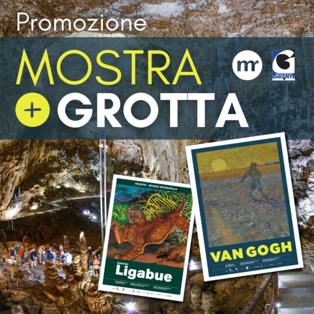 Dalla collaborazione con Arthemisia ed il Museo Revoltella nasce la promozione “Mostra + Grotta” Fino al 30 giugno, presentando alla cassa della Grotta Gigante il biglietto della mostra di Van Gogh e/o Ligabue, riceverai uno sconto speciale sul biglietto per la visita alla grotta!